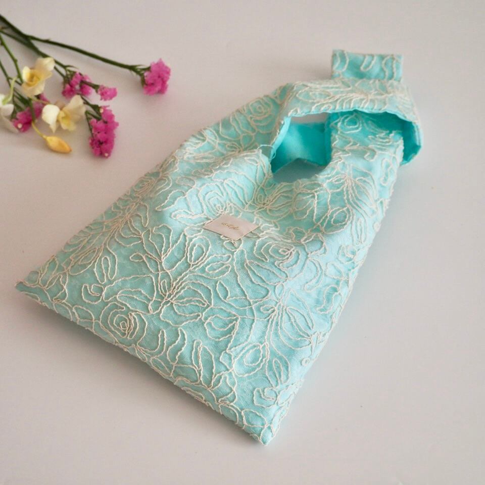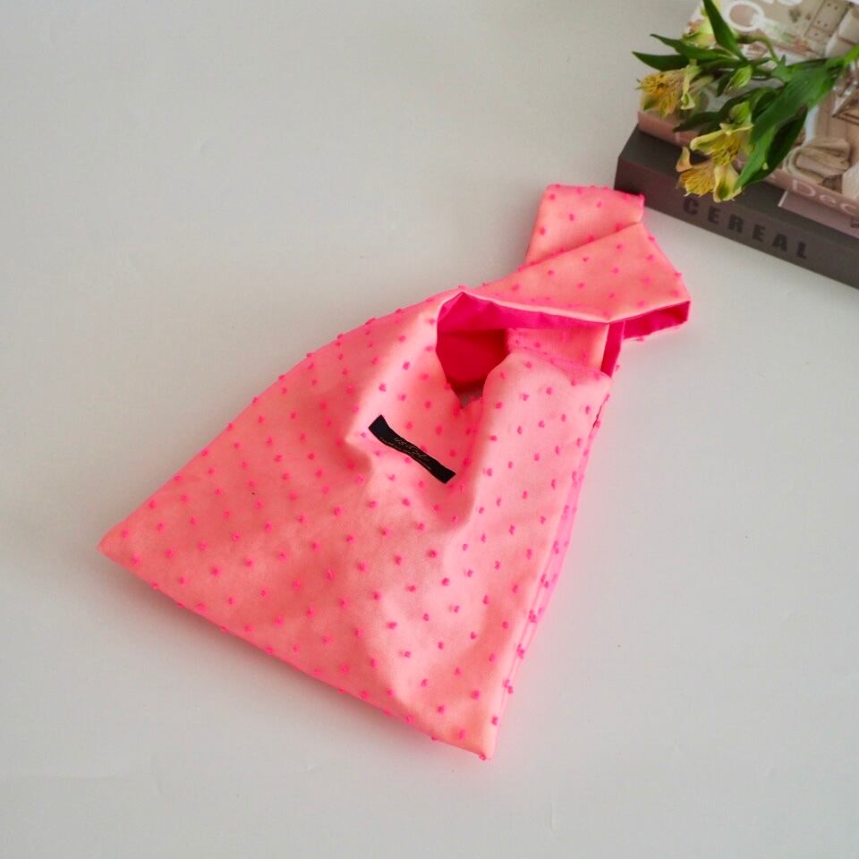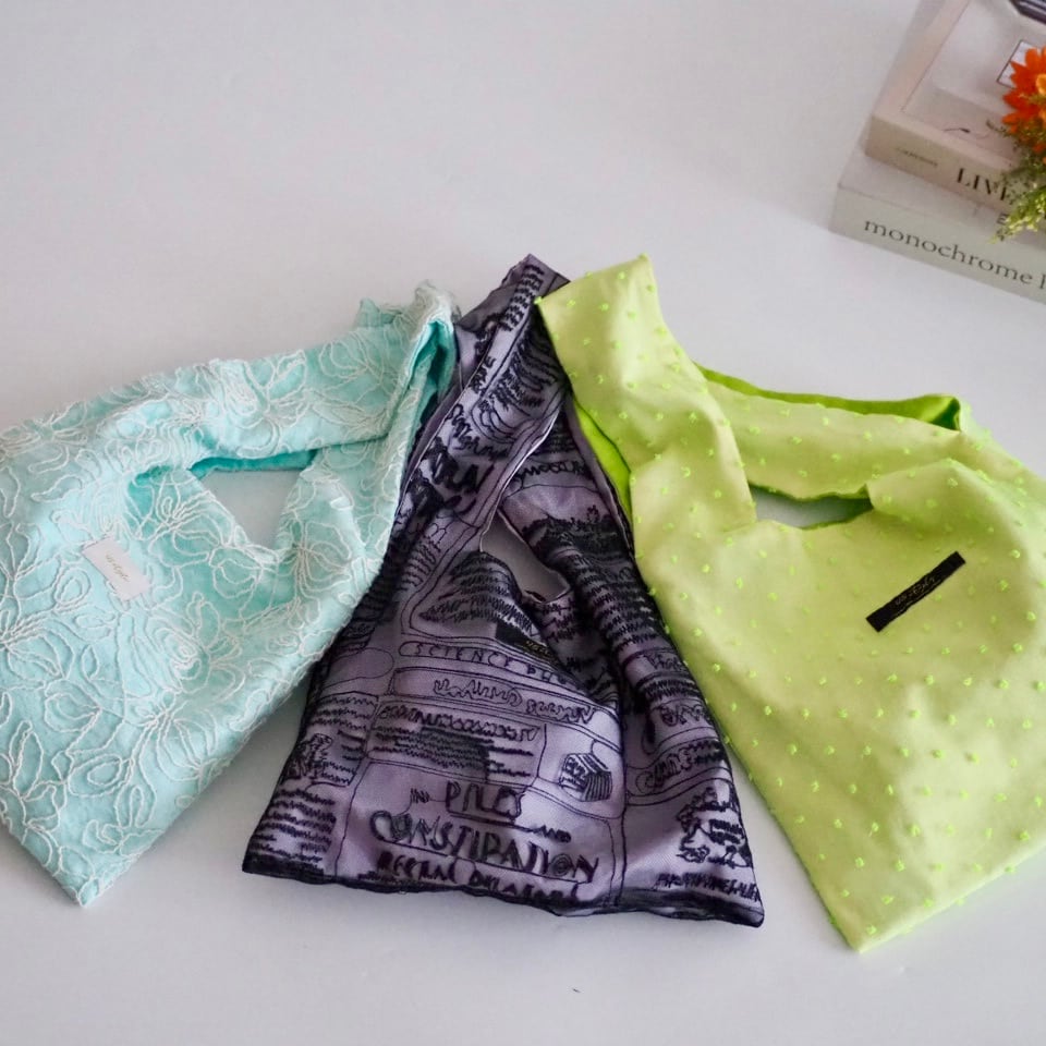 シアーなチュール生地で作った薄手のノットバッグ。