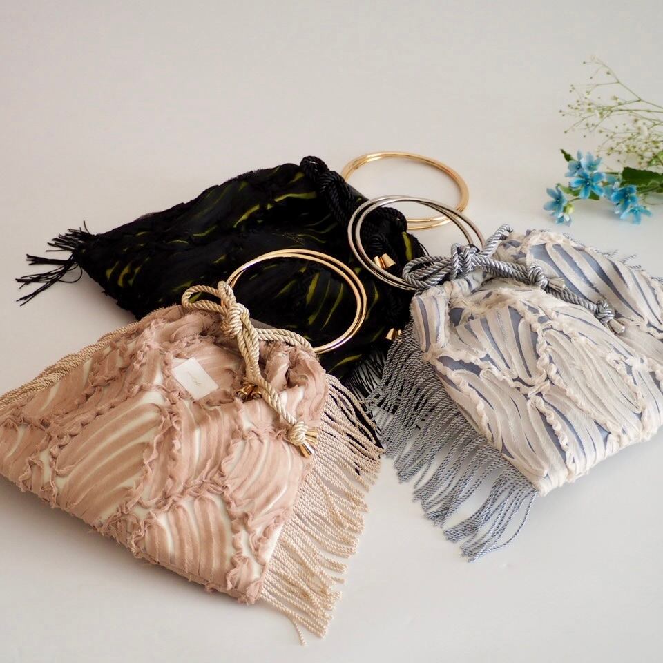 チュールフランジリングハンドルバッグ【グレー/ブラック/ベージュ】