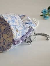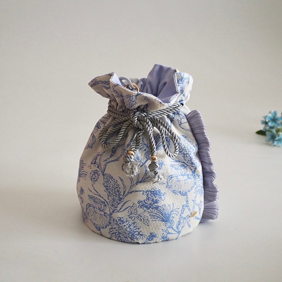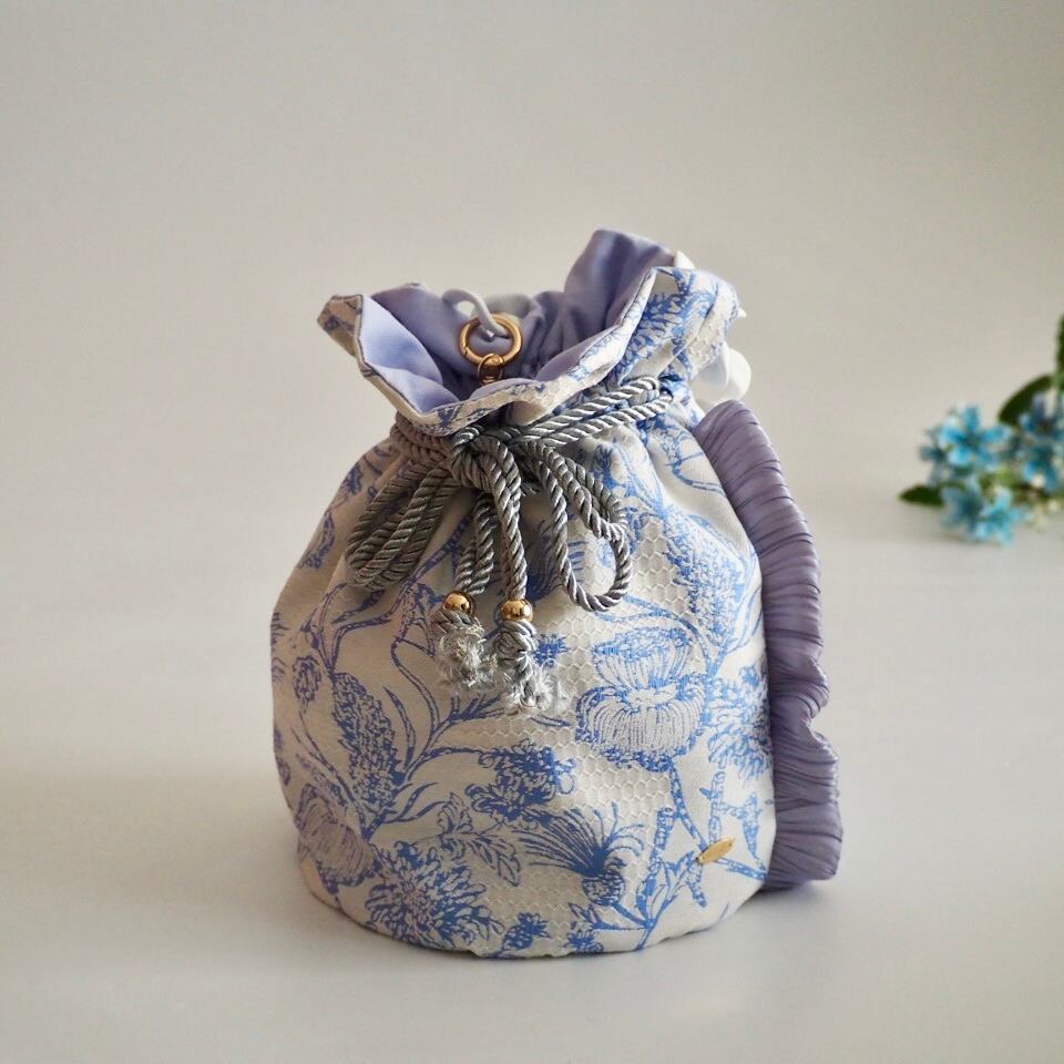 ボタニカルブルー丸底巾着バッグ