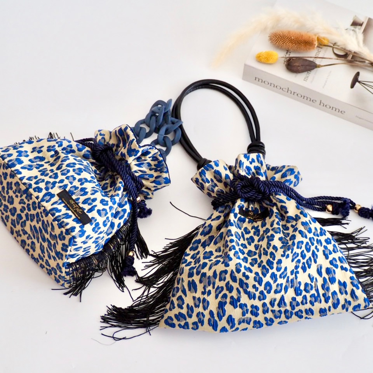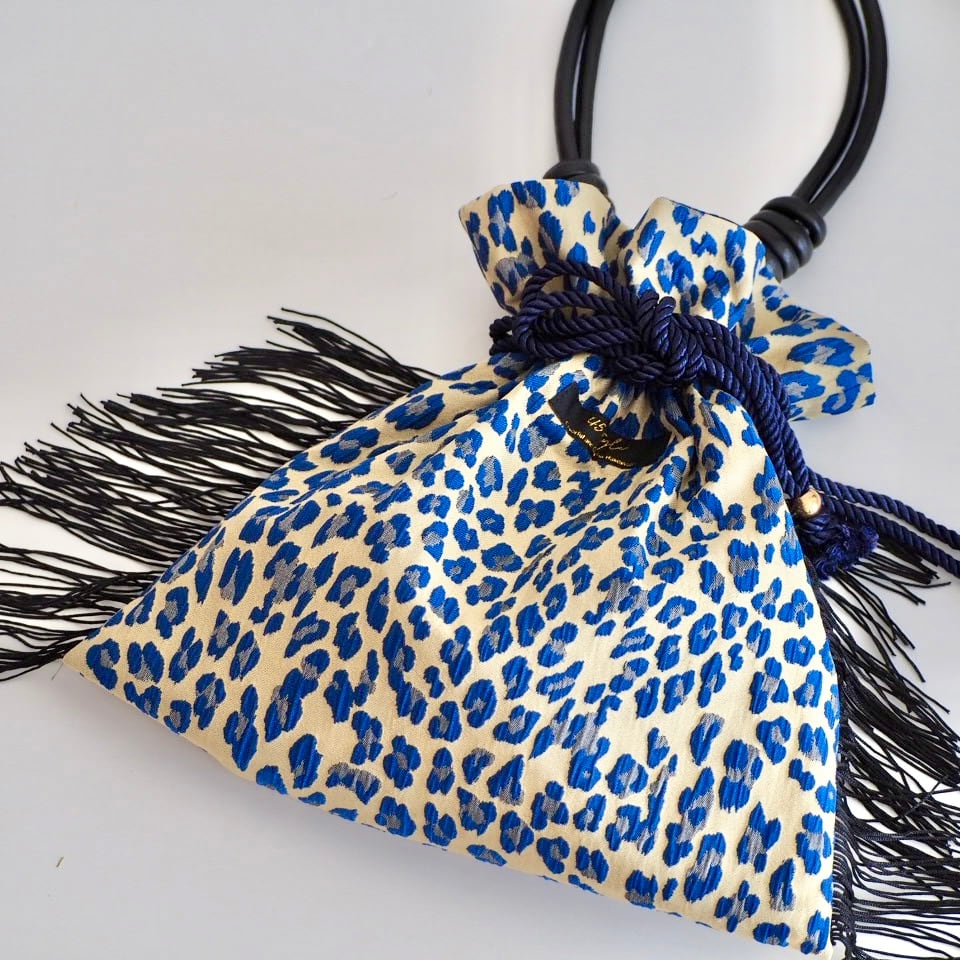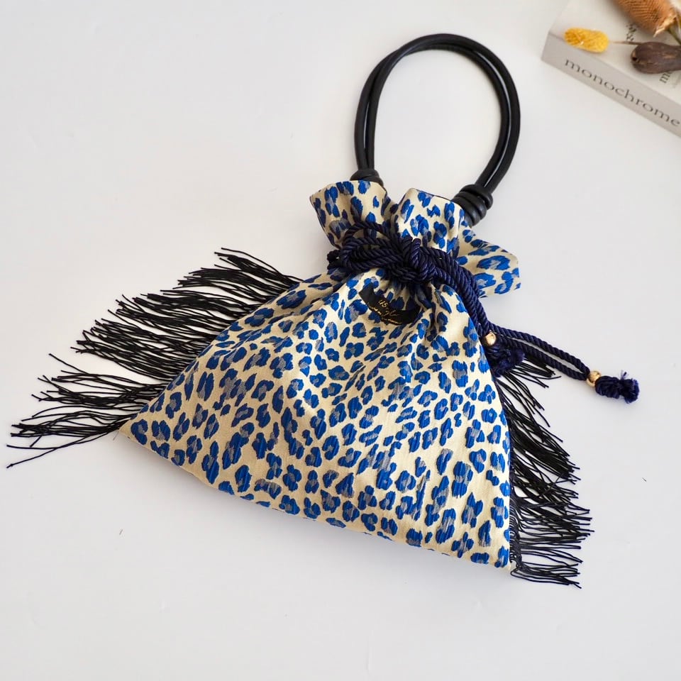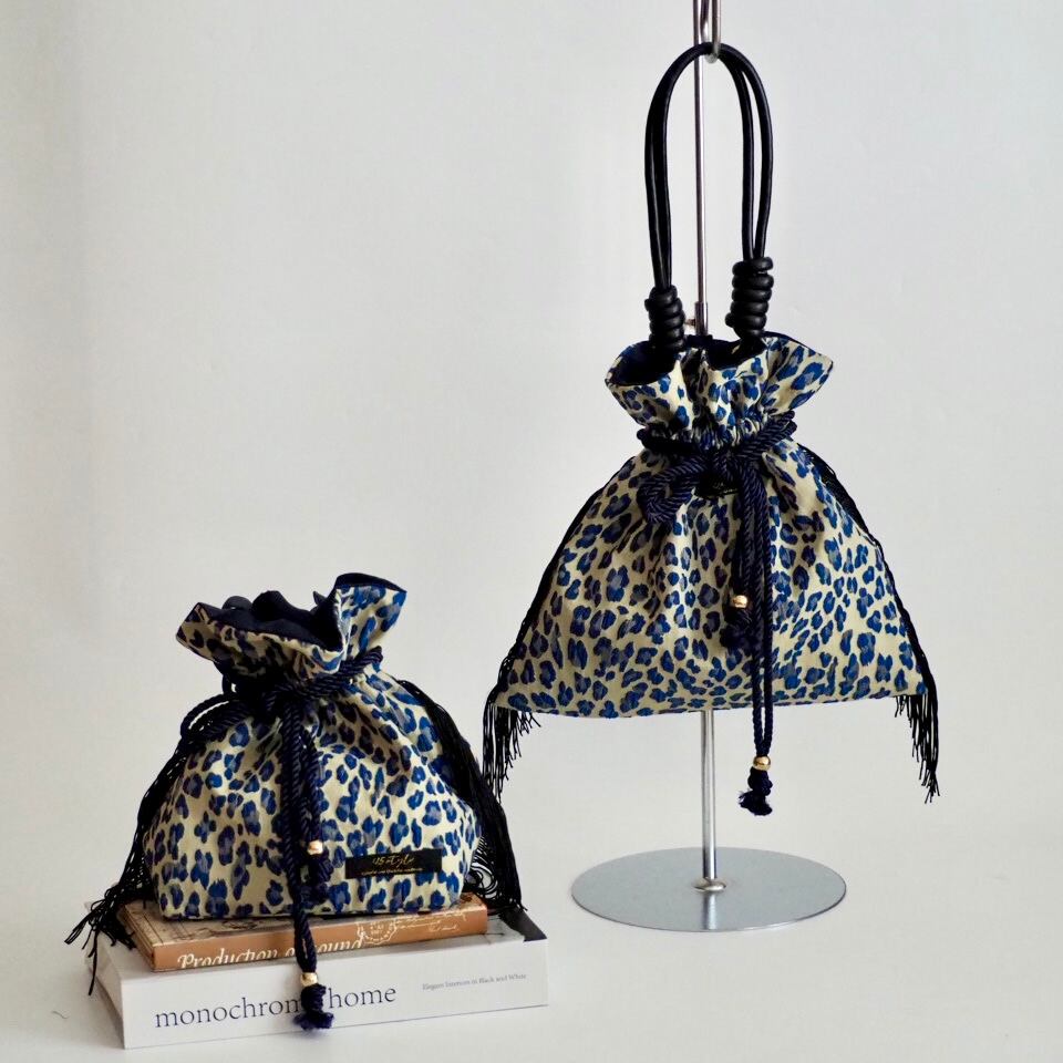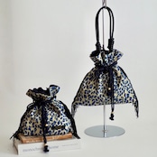 レオパード柄の巾着バッグ。